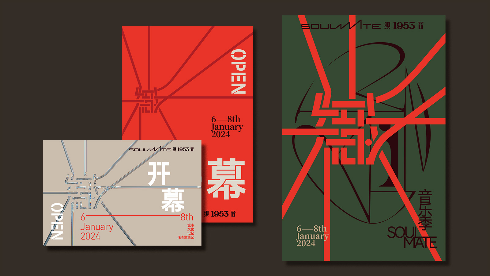 融合定位與美學(xué),傳遞音樂(lè)主題、文旅特色和歷史文化底蘊(yùn)。Logo靈感來(lái)源于園區(qū)建筑、音樂(lè)韻律和紡織意象,將“Soulmate”圖形化為律動(dòng)線條,中文名“織音1953”結(jié)合復(fù)古風(fēng)格,展現(xiàn)時(shí)代特色。